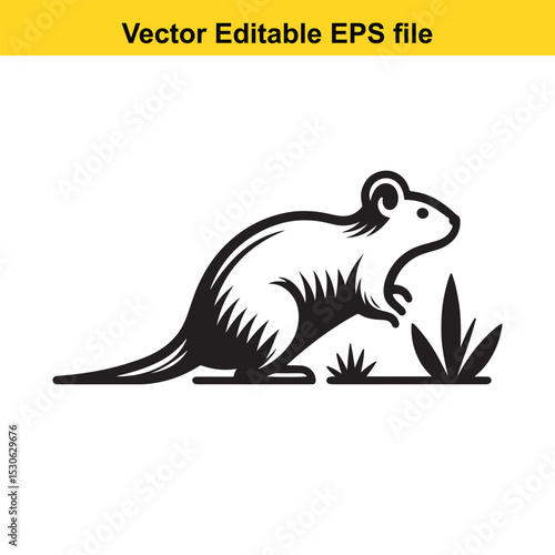Fototapeta premium Stylized Black and White Illustration of a Rat in Grass