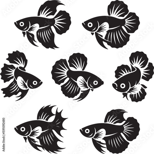 Fototapeta premium Stylized black and white illustrations of siamese fighting fish