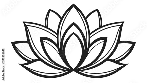 Fototapeta premium Stylized black and white lotus flower illustration with clean lines and symmetrical petals