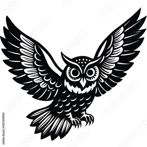 Fototapeta premium Stylized Black and White Owl in Flight Illustration