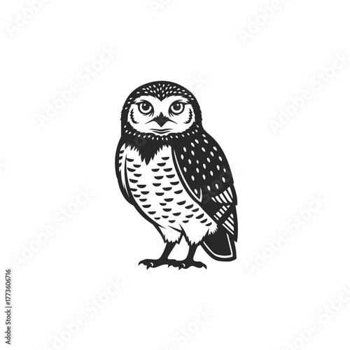 © Hm, Naklejka premium Stylized Black and White Owl Vector Illustration.