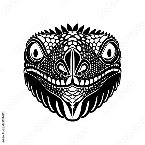 Fototapeta premium Stylized Black and White Reptile Face Illustration.