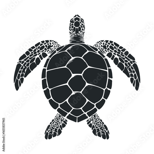 Fototapeta premium Stylized black and white sea turtle illustration with detailed shell patterns