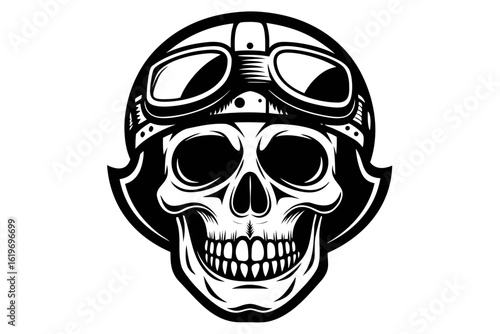 Fototapeta premium Stylized black and white skull wearing vintage pilot goggles and helmet