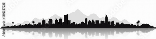© Sha, Naklejka premium Stylized black and white skyline silhouette with mountains and palm trees