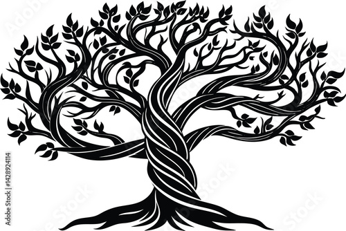 Obraz premium Stylized black and white tree illustration twisted trunk and branches
