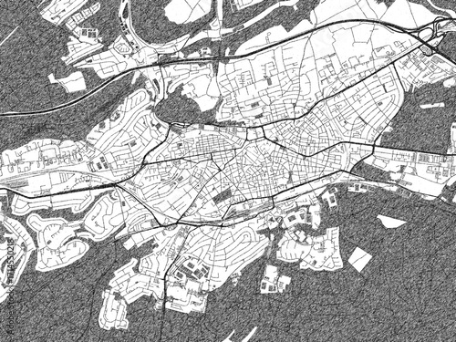 Naklejka premium Stylized black and white urban map of Kaiserslautern, Germany, hand-drawn for...