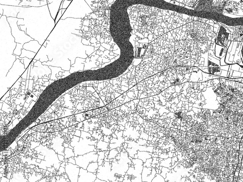 © W&S Stock, Naklejka premium Stylized black and white urban map of Maheshtala, India, hand-drawn style for decor and creative use.