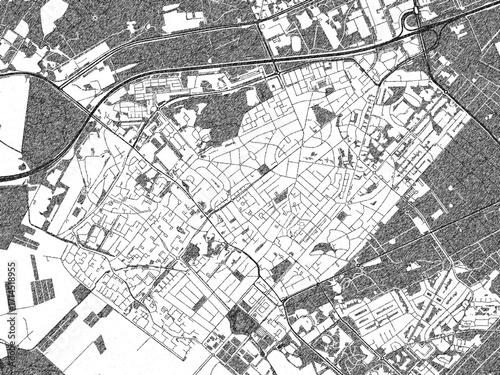© W&S Stock, Naklejka premium Stylized black and white urban map of Zeist, Netherlands, hand-drawn for decor and creative use.