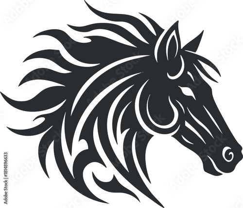 Obraz premium Stylized black and white vector illustration of a horse head with flowing...
