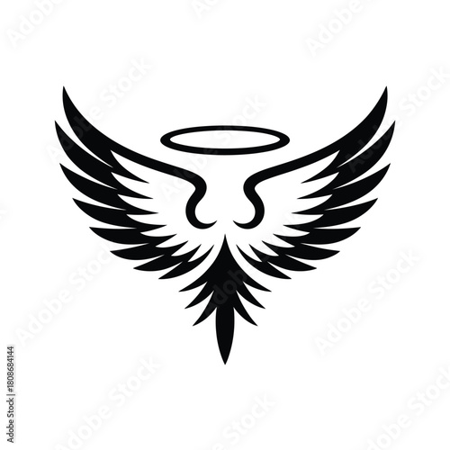 © ariyan, Obraz premium Stylized black angel wings with a halo symbol