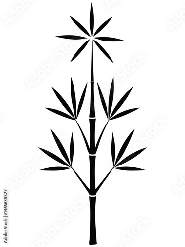 © Gofur Artistry, Fototapeta premium Stylized black bamboo plant vector illustration with leaves in a symmetrical arrangement, isolated on a white background.