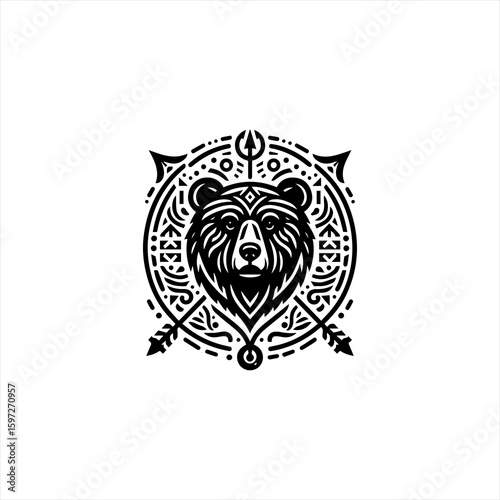 © shofiullah, Fototapeta premium Stylized Black Bear Head Emblem with Arrows.