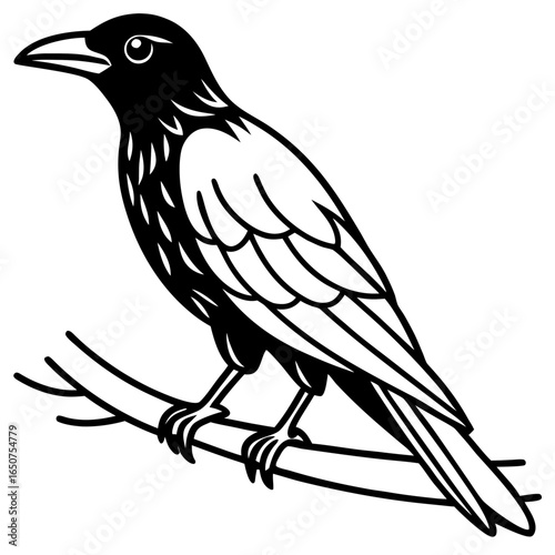 © Samauzzaman, Obraz premium Stylized black bird perched on a branch