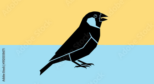 Obraz premium Stylized Black Bird Silhouette on Yellow and Blue Background