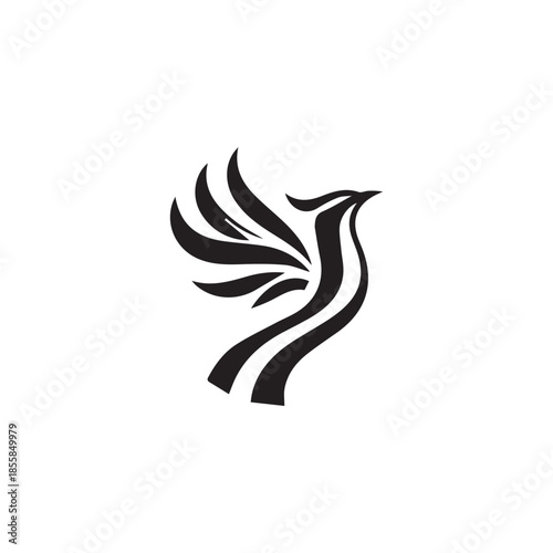 © Yandika , Fototapeta premium Stylized black bird with wings spread, isolated on white background