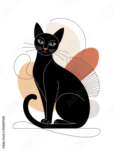 Obraz premium Stylized black cat with abstract shapes and fan detail