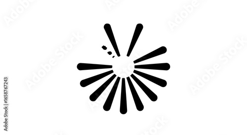 Obraz premium Stylized black circular loading icon with radiating rounded bars and a progress gap.