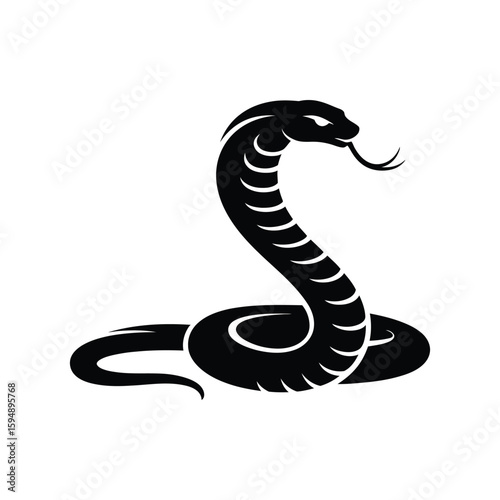 Fototapeta premium Stylized black cobra snake illustration with hood raised and tongue flicking