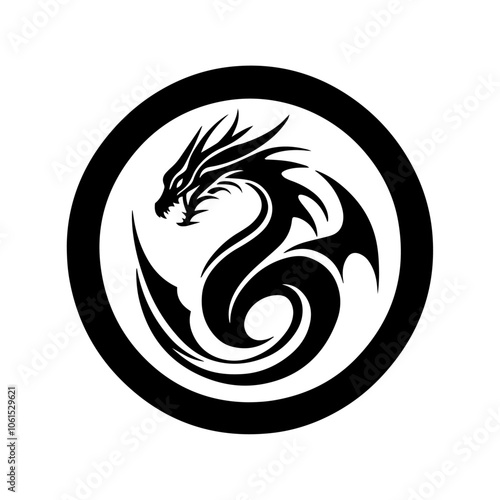 © KAMAPAN, Naklejka premium Stylized Black Dragon in Circle logo or icon on White Background