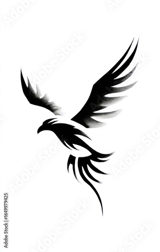 © Feitan, Fototapeta premium Stylized black eagle design with wings spread, isolated on white background