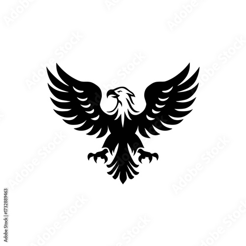 Fototapeta premium Stylized black eagle with wide open wings on a white background