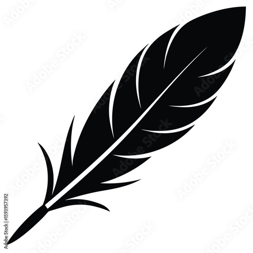 Fototapeta premium Stylized Black Feather Illustration Single Plume Design Silhouette
