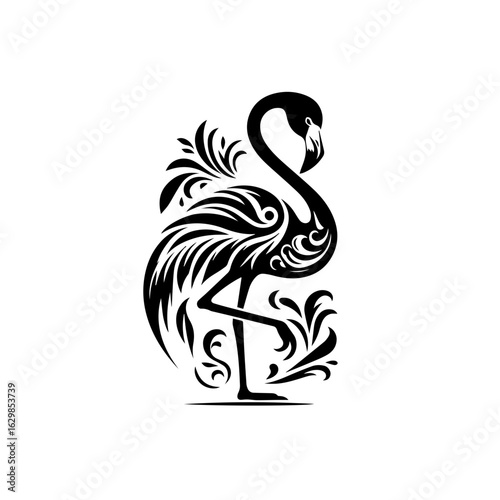 Obraz premium Stylized black flamingo with ornate details isolated on white background