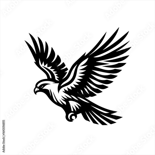 Obraz premium Stylized black hawk in flight with wings spread wide