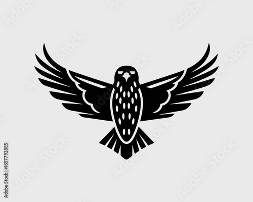 © Vector, Obraz premium Stylized black hawk with wings spread wide