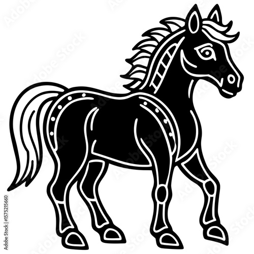 Obraz premium Stylized black horse silhouette with white outline and decorative details