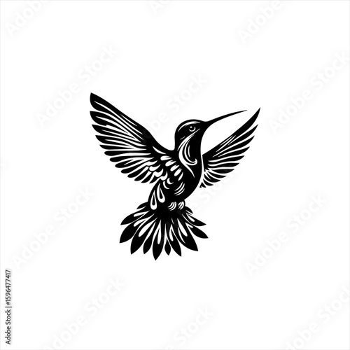© mdakbar, Fototapeta premium Stylized Black Hummingbird in Flight Silhouette.