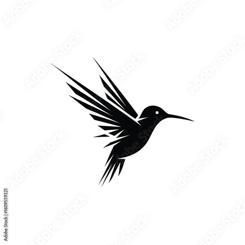 Fototapeta premium Stylized Black Hummingbird Silhouette with Geometric Wing Design.