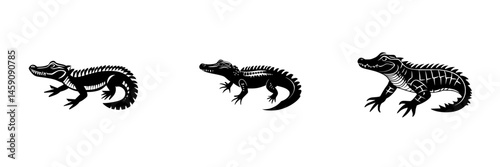 Obraz premium Stylized black icons of crocodiles depicted in various postures against a plain background