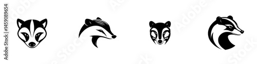 © Антон Сальников, Fototapeta premium Stylized black icons of various badger faces showing different expressions and designs in a minimalist style