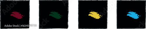 © Nazmul, Obraz premium Stylized Black Ink Boxes with Grunge Texture – Vector Rectangle and Square Frame Set for Modern Design Use