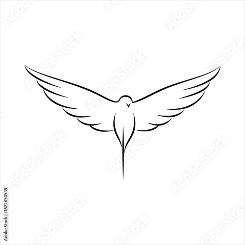 © monasa, Fototapeta premium Stylized black line drawing of a bird with wide spread wings silhouette line art