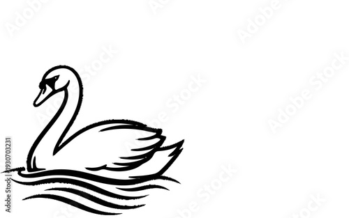 Naklejka premium Stylized black line drawing of a swan gracefully gliding on wavy water
