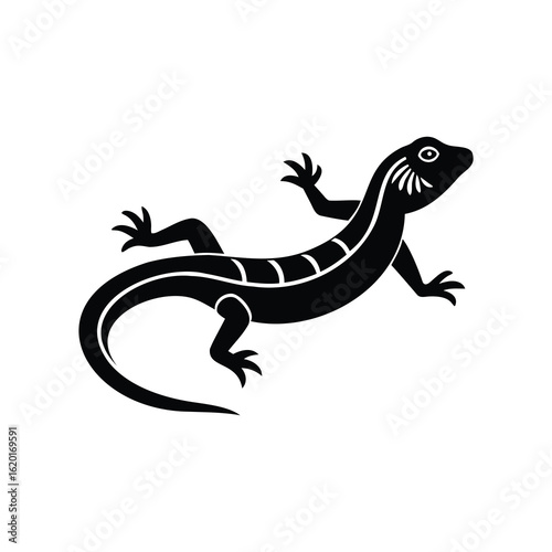 © MstHumaira, Naklejka premium Stylized black lizard image with unique scale pattern and curved tail design