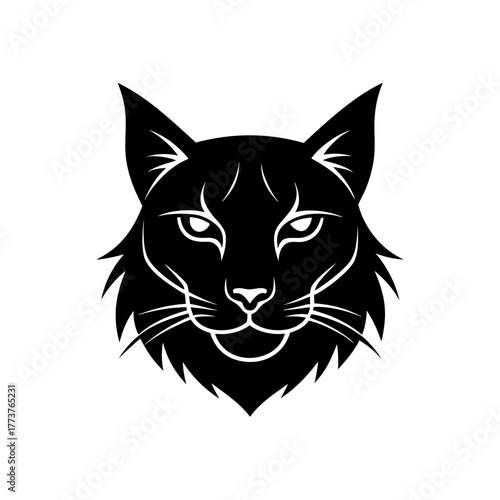 © Arsi, Fototapeta premium Stylized black lynx head design on transparent background silhouette