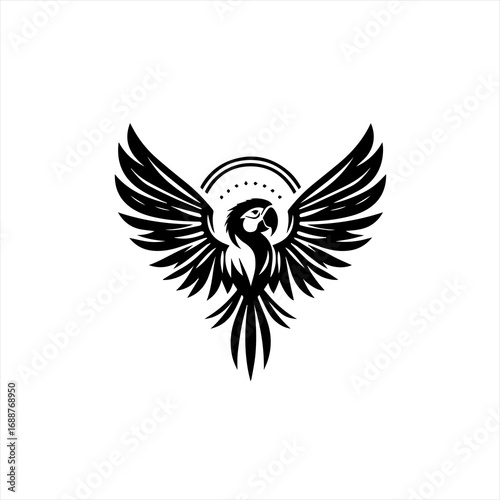 © Md Aktaruzaman, Obraz premium Stylized black macaw parrot with wings spread wide