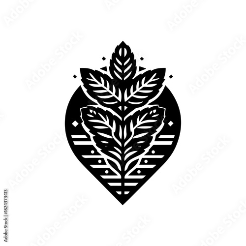 © Msbhai, Naklejka premium Stylized Black Mint Leaves Emblem