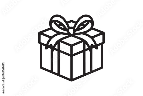 © md, Obraz premium Stylized black outline of a gift box with a bow isolated on white background