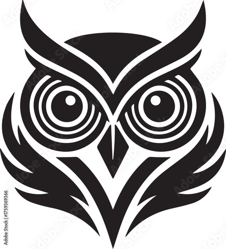 Obraz premium Stylized Black Owl Head Emblem logo symbol