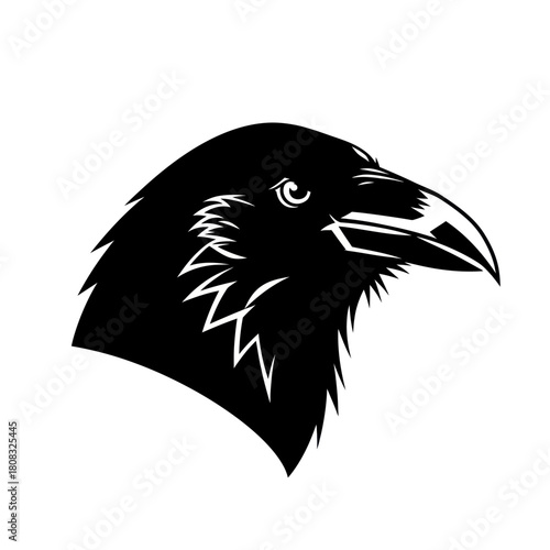 © Anak, Fototapeta premium Stylized Black Raven Head Silhouette with Detailed Feathers and Sharp Beak.