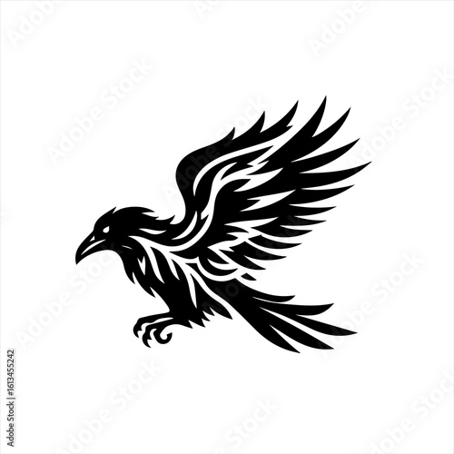 Fototapeta premium Stylized black raven in flight tribal design