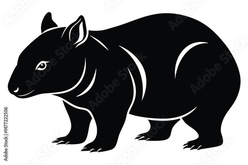 Fototapeta premium Stylized Black Silhouette Illustration of a Wombat, Australian Marsupial With Distinctive Features