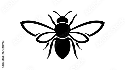Obraz premium Stylized Black Silhouette of a Bee Insect with Wings Spread Wide.