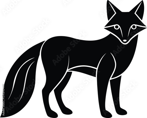 © MdShahriar, Fototapeta premium Stylized black silhouette of a standing fox with geometric shapes