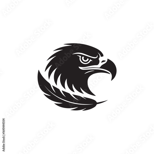 Obraz premium Stylized black silhouette of an eagle s head with feather detail